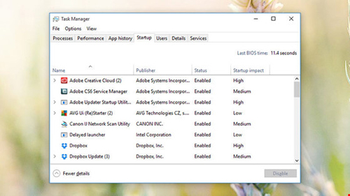 Nếu có quá nhiều phần mềm khởi động cùng Windows, máy tính sẽ phải mất nhiều thời gian hơn để xử lý. Do đó, để hạn chế tình trạng trên, bạn nên tắt bớt một số chương trình không cần thiết bằng cách nhấn Ctrl + Shift + Esc, chuyển sang thẻ Startup và chọn Disable.